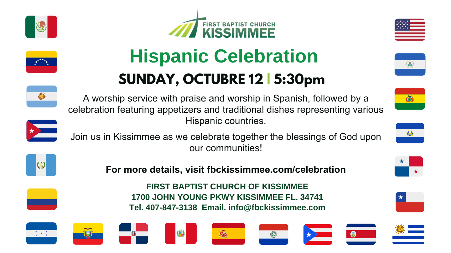 Tendremos adoración, mensaje y un compartir con platos típicos de países hispanos.